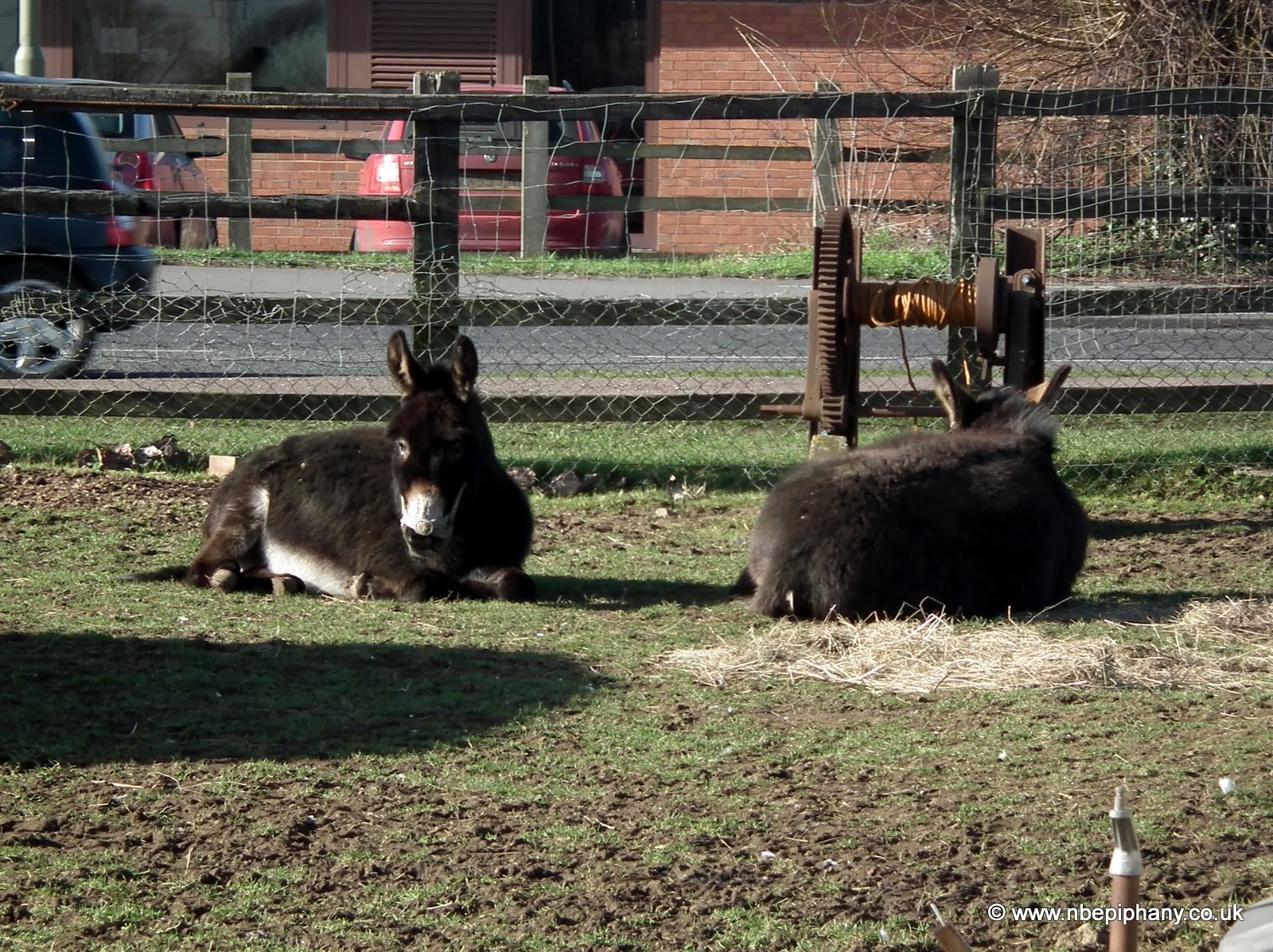 I wish I could sleep, let alone doze by a busy main road. These donkeys are beside the busy A423 Banbury to Southam Road.